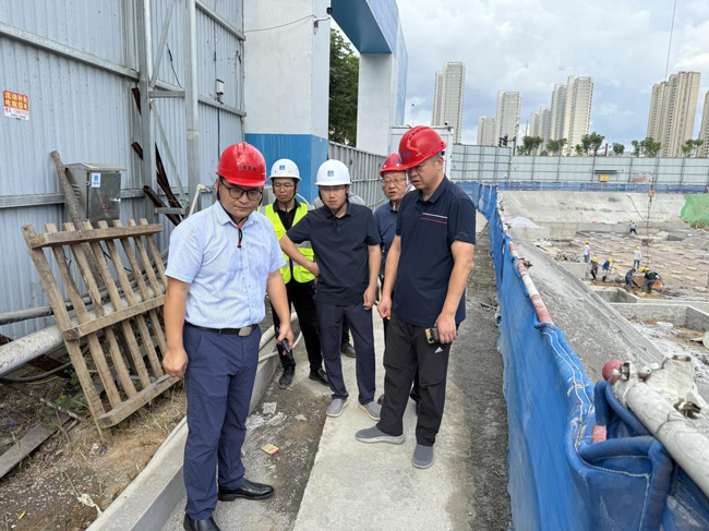 调研中,何理尚指出,当前项目已进入地库大面积施工阶段,需重点关注以下工作:一是筑牢安全防线,强化夏季施工保障。必须将安全生产摆在首位,严格落实隐患排查和动态监管,定期组织安全培训与应急演练,切实提升全员安全意识与应急处置能力;二是完善质量体系,压实责任分工。要细化施工组织方案,合理划分作业区域,明确各班组任务清单,确保钢筋绑扎、水电安装等关键工序工艺标准落实到人,保障施工质量稳定达标;三是强化环境治理,落实扬尘防控措施。细化施工区域围挡、洒水降尘等管理要求,推动绿色文明工地建设,确保各环节衔接有序、效率不减。