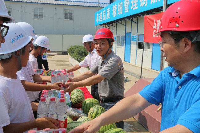 中建五局沁园项目现场负责人对龚总的慰问和关怀表示感谢,表示将按照龚总的指示要求,安排好现场工人的生产生活,做好防暑降温工作,同时合理安排施工计划,保质保量做好工程建设。