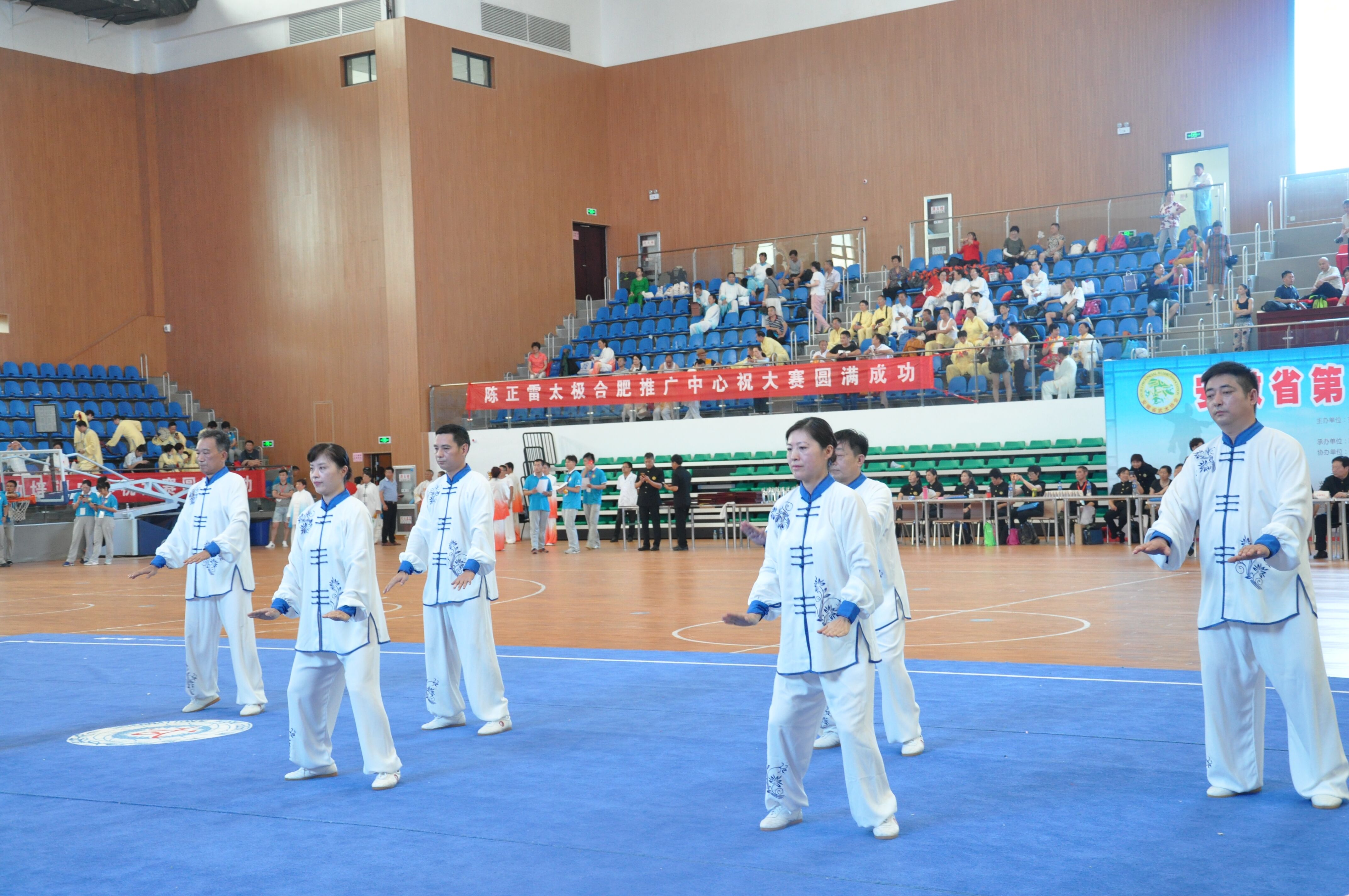 7月15日比赛当天,城改集团太极队参赛队员早早的就来到比赛场地排练等待。高温酷暑,烈日炎炎也阻挡不了大家参赛的热情和力争荣誉的决心。下午一点整,比赛正式开始。伴随着旋律优美的古典音乐,身着白色青花瓷服饰的7名参赛队员开始了24式简化太极拳比赛。他们步调整齐划一,神态凝神静气,或白鹤亮翅、或手挥琵琶,腾、挪、转、移,拳风呼呼,脚步铿锵;行云流水,出神入化,表现十分出色,将太极功夫含蓄内敛、刚柔相济的风格,展现得淋漓尽致。经过紧张激烈的角逐,合肥城改集团太极队最终荣获集体二十四式太极拳三等奖和安徽省第九届传统武术比赛武德风尚奖。