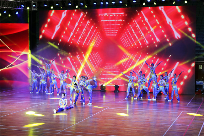 作为整场比赛第一支出场队,队员们早早整齐划一的在候场区列队等待。9点30分,伴随主持人激情慷慨的介绍,城改集团22名健身操队员在啦啦队的欢呼喝彩声中带着灿烂的笑容迈着昂扬的步伐闪亮登场,明快亮丽的身姿,欢快悦动的音乐点燃了一个个灵动的身影。队员们演出默契,深情投入,动作精湛,英姿飒爽,彰显当代巾帼风范,向观众与评委展现了一场力与美、视与听完美相融的精彩盛宴。