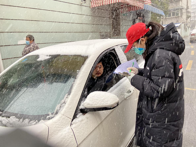 今天是2月15日,是我在社区抗“疫”的第三天。经过这几天的值守,我逐渐了解到社区工作人员的人手不足,很多一线工作人员都已经超负荷工作。在我所值守的长淮街道胜利社区中兴花园小区,和我并肩作战的甚至还有70多岁的社区老人。他们告诉我要保护好自己生活的家园,要做好社区防控工作中的每一件事情。他们没有专业的防护措施,甚至口罩都是自己想办法配置,看到他们尽职尽责的工作态度和饱满的工作热情,我更加觉得应该认真对待这次任务,为守护一方平安贡献出自己的一份力量。在这里,老人们的善良也深深地打动我:“小陶,你冷不冷?有没有穿厚衣服?下大雪了,回家路上滑要慢慢走啊,不要忘记消毒啊......”,听到这些关心的话语,我心里充满了温暖和感动,我想很多人待在家里的时候,应该想不到会有一群老人在风雪中守护着我们的安全。