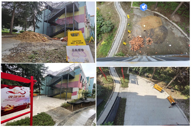 南国花园幼儿园北侧楼梯拆违后,地面破损严重,建筑垃圾随地堆放,绿植缺失明显,既影响了小区形象,也给周边业主生活带来了不便,群众意见强烈。为美化社区环境,提升红色教育氛围,扎实开展“双报到”工作,城建支部与滨南社区共同谋划,围绕打造共建园地切实解决群众困难,制定并实施了一系列整改方案,共计完成硬化铺装地面70多平米,清理建筑垃圾12立方米,增设了座椅、宣传栏等设施,为小区居民提供了一处开展活动、休闲放松的便利场所,得到了一致好评。