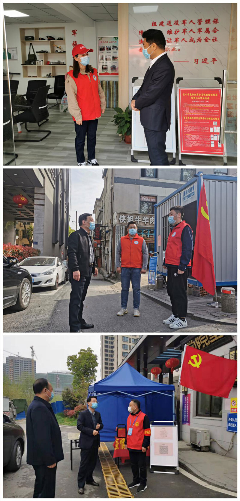 近日,合肥城改集团党委书记、董事长张平等领导班子成员前往翠竹园、槽坊郢、磨店等多个疫情防控点,看望慰问集团公司选派奋战在社区防疫一线的志愿者们,向志愿者们连日来的默默坚守、辛勤付出表示高度赞扬与衷心感谢,并送去防护用品等物资助力后勤保障工作。