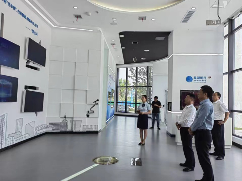 张平一行首先参观了“巢湖明月”展厅,全面了解气象预报、宇宙演化模拟、抗震分析等科研创新成果及数字化运作情况,身临其境感受“科技大脑”先算中心对城市智慧生活提供的数据支撑,更加直观认识和感受数字经济和数字生活。