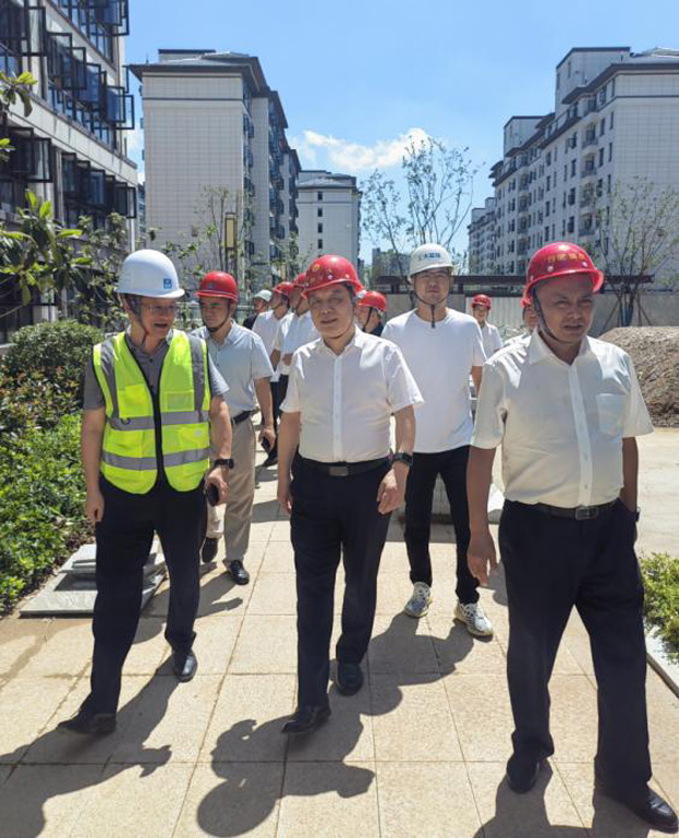 7月的移湖观邸项目工地,烈日炎炎,热浪滚滚,但施工现场依然是一片繁忙和热火朝天的建设景象。目前项目主体工程已接近完工,配套工程正在收尾。龚仁玮一行深入施工现场,仔细查看主体工程外立面、景观绿化、空气源热泵中央空调和空气源热水供应系统的施工情况,认真听取施工单位关于工程建设的情况汇报,并详细询问各项工程的验收程序。龚仁玮要求施工单位要充分发挥国有企业的社会责任,把安全生产放在首位,要及时调整作业时间,避开中午高温时段,并合理减轻工人劳动强度,做好夏季防暑降温工作,切实保护一线作业人员的身心健康。