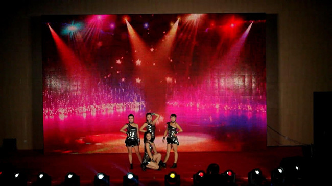 紧接着动感的音乐Fingers响起,在闪亮的灯光与背景下,四位光鲜靓丽的爵士舞者入场,她们是来自顺昌物业的一线员工,爵士舞蹈的节奏明快,与先前的节目截然不同,带动现场气氛活跃起来,将整个晚会推向高潮。