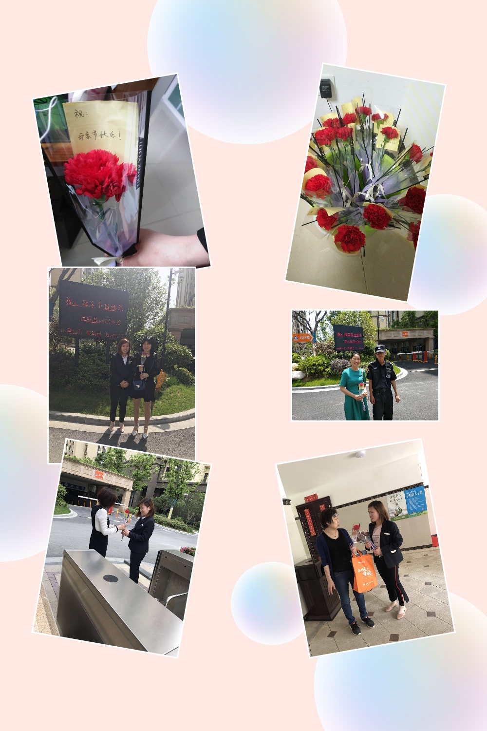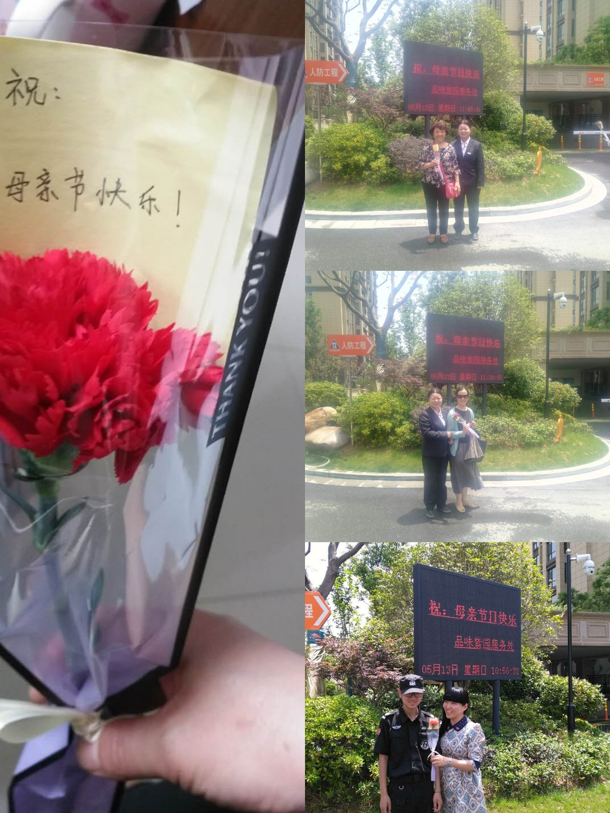 为感谢广大业主对物业服务工作的支持与帮助,进一步提升服务品质,合肥市房地产经营公司庐阳分公司——品味紫园物业服务中心,在温情五月开展感恩母亲节社区文化活动。客服中心的工作人员提前一天在母亲节爱心卡上写道:“祝:母亲节快乐” ,随后将卡片插在康乃馨上,准备在节日当天给小区的妈妈们送去惊喜。