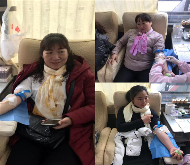 (员工们拿着献血证脸上洋溢出幸福的笑容)