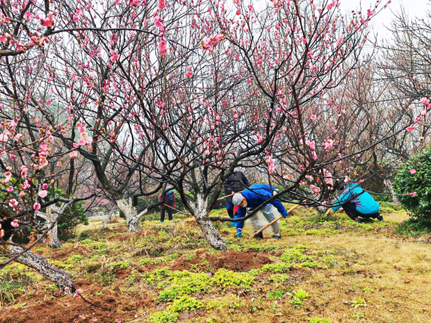 一年来,华夏园林公司受集团委托,当好护花使者,对基地内梅花等乔灌木进行常态化生长势监测,视情进行树盘翻松、杂草清理;近日,又组织开展了春季专项养护工作。目前,梅花已进入盛花期,迎来一年中最热闹的季节。漫步林间,满树繁花,可谓龙行龘龘,昂扬而热烈,梅开馫馫,浓厚而幽远。