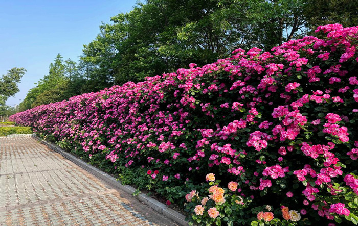 在阜阳智能制造产业园项目现场,工程部员工邓宗才带领绿化工人开展精细化养护作业,每日早晚两次对园区绿化进行抗旱浇水,并同步完成除草、施肥等系列养护工作。精心养护的藤本月季已开满花墙,该项目养护工作成效显著,获得了主管单位的高度认可。