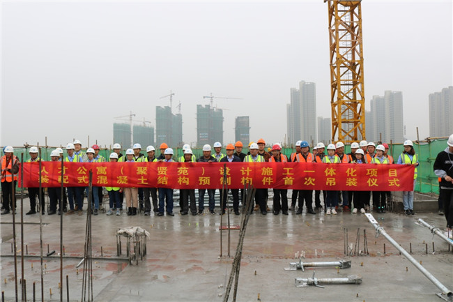 人才公寓举行装配式混凝土结构预制构件首次吊装仪式