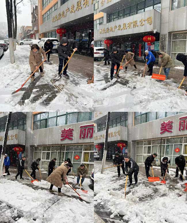 天气虽寒,但大家精神饱满,干劲十足,积极主动逐段清理,相互配合,有序推进。党员们拿着除雪铲、铁锹、扫把等除雪工具,扫的扫,铲的铲,纷纷投入到铲雪除冰活动中,全力清除公司附近道路上的积雪和暗冰,热火朝天的劳动场面让寒冷的天气也显得暖意浓浓。经过大家的共同努力,积雪被清扫干净,路面呈现出干净整洁的面貌,为干部职工及周边群众提供一个方便安全的道路环境。