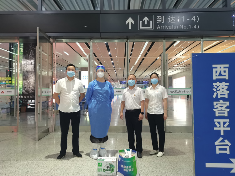 7月13日上午,商业运营党支部书记唐军一行来到合肥南站看望慰问下沉已近二十天的青年党员蒋泽平,将组织的温暖和关怀送到她的身边。唐军书记详细询问了她当前的日常工作和自我防护情况,加油鼓劲,叮嘱她要格外注意自身安全,做好个人防护。蒋泽平对支部的关怀表示感谢,她说:“作为公司最年轻的共产党员,我一定会全力以赴、保质保量地完成任务,希望疫情早点过去。”她以实际行动为党旗添彩,为党徽争光,也践行了自己的入党誓言。