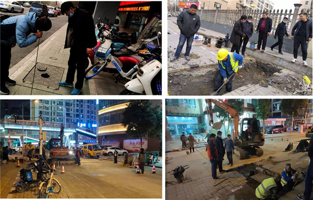 2月初,抢修工作经过近两周的努力,终于查明漏水点。为能保障居民平安迎接新春佳节,在公司的多方协调下,终于将几家相关单位集结在一起,全力攻战。2月4日,正值农历小年,抢修小组提前做好各项准备,一大清早就督促施工单位将各类机械运送到位,并全天守候在施工现场。道路破复、开挖施工、管道更换,所有工序有条不紊地进行,经过一整天的奋战,终于在傍晚时分完成所有施工任务,将漏水管道更换完毕,恢复道路原状。在清理完路面灰土和周边围挡后,所有工作人员才放心离开,各自回家赴已迟到的团圆饭。此时,小年夜的灯光早已亮起。